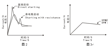 圖1直流調速原理框圖 五、傳統控制與XNX-SPM控制啟動波形比較(如圖2和圖3) XNX-SPM為我公司XNX-ZLYB控制箱中使用的智能型直流潤滑電機控制裝置